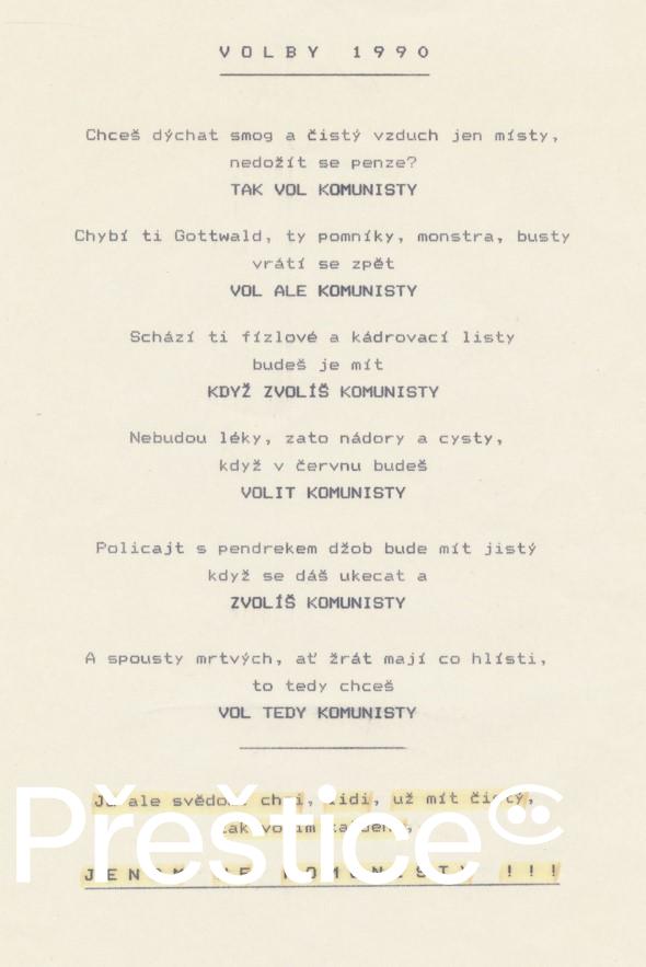 02) Obecní kronika Přeštice (1990): „V této době se v našem městě vyskytlo množství různých plakátů, různých politických směrů, různých kvalit, docházelo ke strhávání.“ Foto Jiří Běl