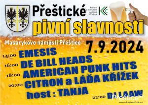 Tradiční Přeštické pivní slavnosti, výborná hudba a velké množství pivovarů, které jsou součástí akce.