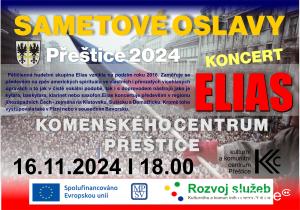 Oslavy 35.výročí SAMETOVÉ REVOLUCE v Přešticích. Koncertní vystoupení skupiny Elias - komponovaný pořad, kde budou americké černošské spirituály prokládány čtením ze vzpomínek členů skupiny Spirituál kvintet, které přiblíží problémy s komunistickým režimem při jejich koncertní činnosti před roke