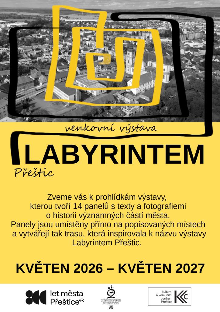 Venkovní výstava LABYRINTEM PŘEŠTIC věnující se zaniklým budovám. Prohlédněte si celkem 14 oboustranných panelů, které jsou rozmístěny po Přešticích na místech, kde stály významné přeštické stavby – navštívíte např. nejstarší radnici, starý mlýn a přilehlý ostrov, panské dvory, masné a chlebné krámy, přeštickou Prefu, cihelny, školu a celou jednu zaniklou čtvrť.